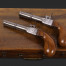 Pequeña pareja de pistolas «Box-lock» a percusión, con estuche. Francia, mediados XIX.